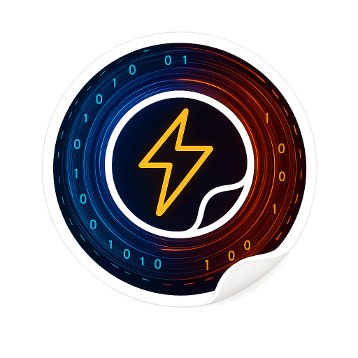 A vector die-cut sticker of a futuristic digital data spoon. The spoon's bowl is replaced by a...
