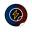 A vector die-cut sticker of a futuristic compass. The object's face is replaced by a glowing...